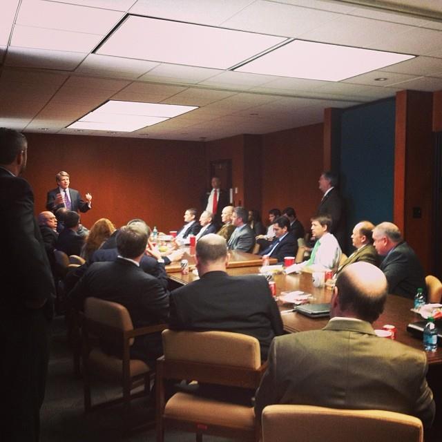 Ahead of the Senate hearing, state Rep. Buzz Brockway, R-Lawrenceville, invited his colleagues to a lunch he bankrolled, featuring the national leader of the convention movement, Michael Farris.